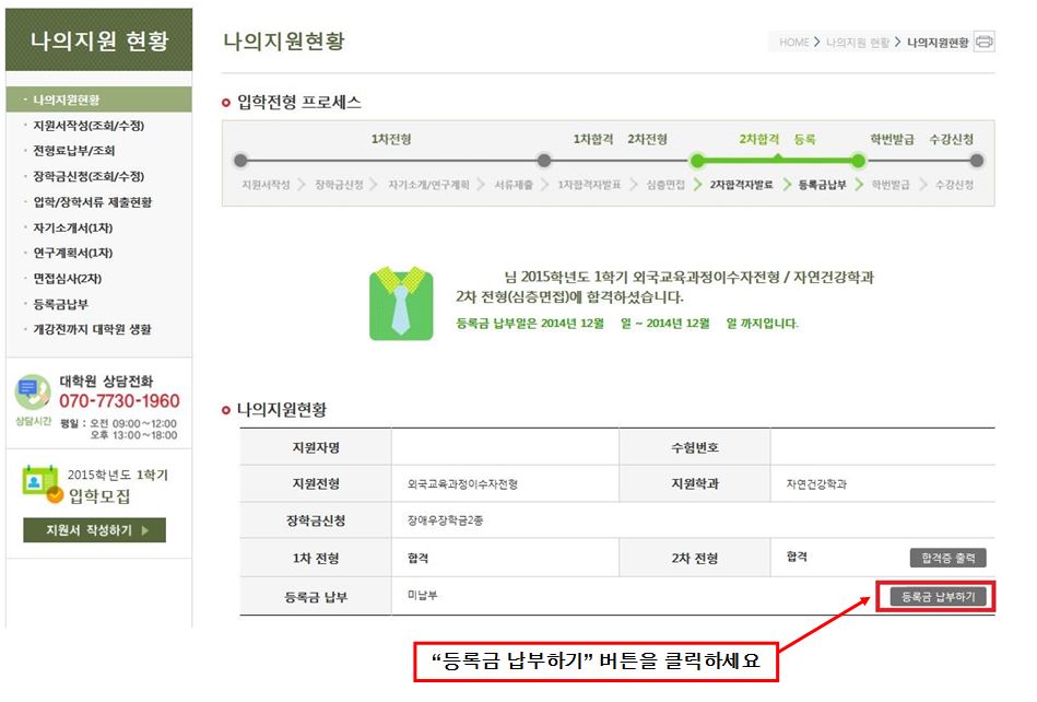 15학년도 1학기 최종합격자 등록금 납부방법 안내