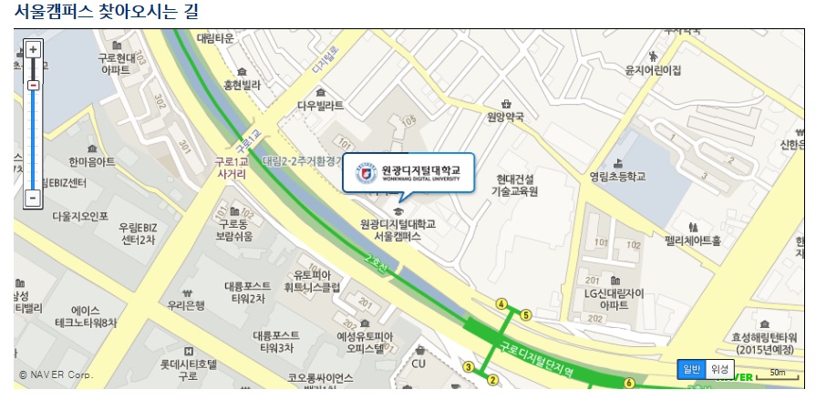 2. 도로명 주소 : (150-827) 서울특별시 영등포구 도림천로 437 원광디지털대학교