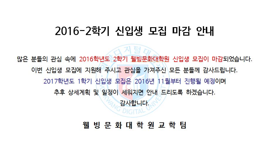 2016-2학기 신입생 모집 마감 안내