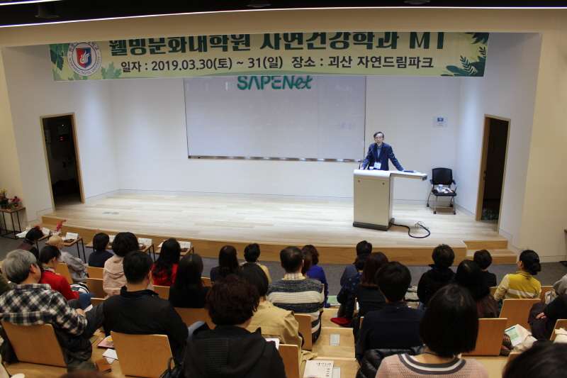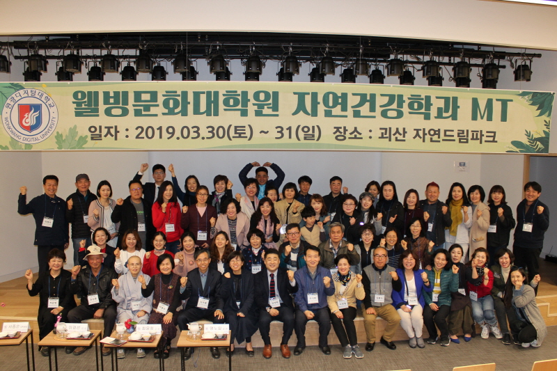 원광디지털대학교 웰빙문화대학원(원장 서종순)은 지난 3월 30일(토)부터 31일(일)까지 충북 괴산 자연드림파크에서 '2019학년도 1학기 자연건강학과 학생전체모임'을 개최했다.
