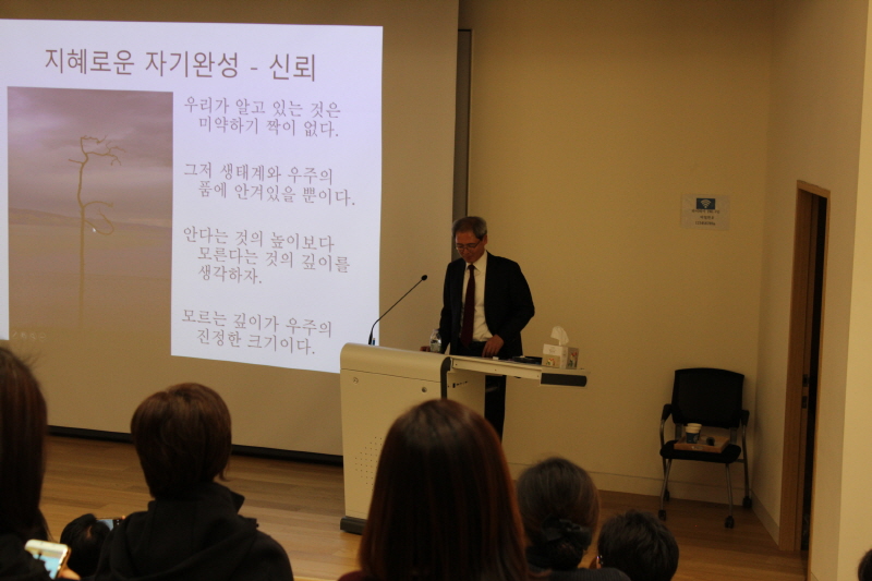 이후에는 본교에서 '산림치유학'을 강의하는 신준환교수(前 국립수목원장)가 '나무와 함께 하는 심신수양'을 주제로 특강을 진행했다.