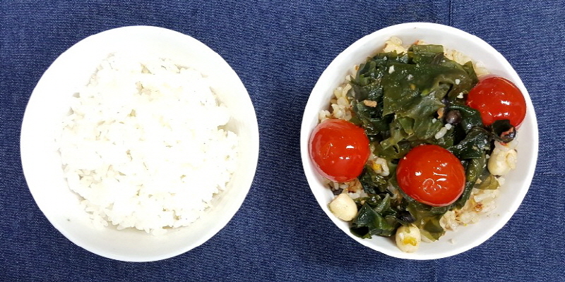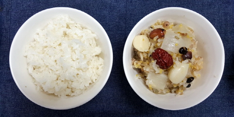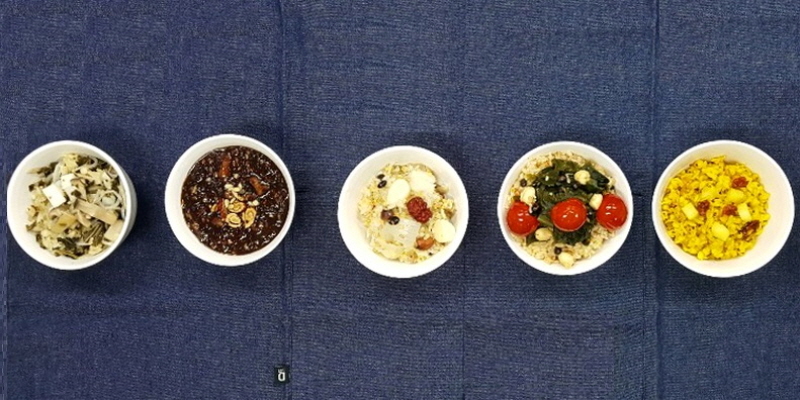 각 조별로 개발한 약선 밥(치자 율무밥, 뽕잎 구기밥 등)을 시식하고 품평을 진행하였다.