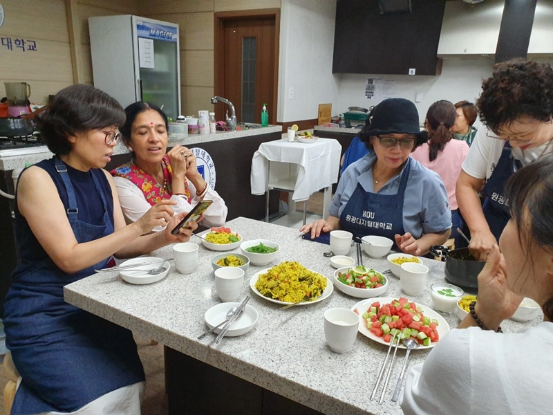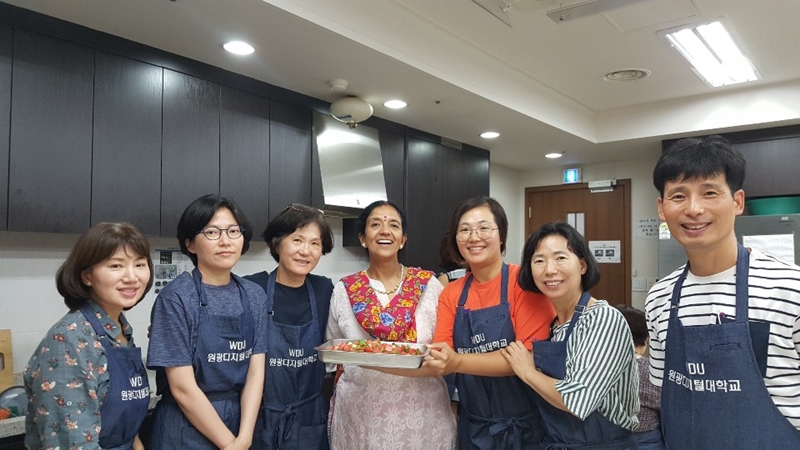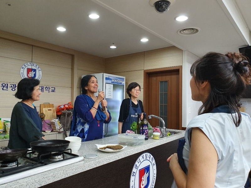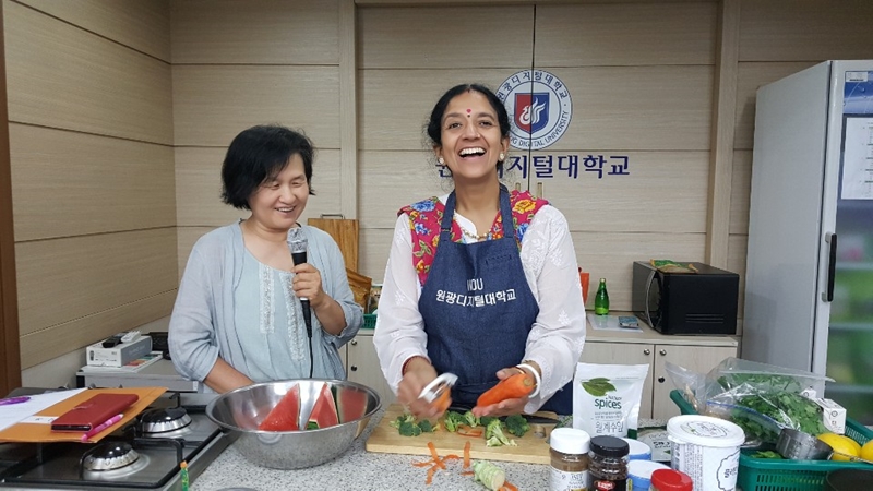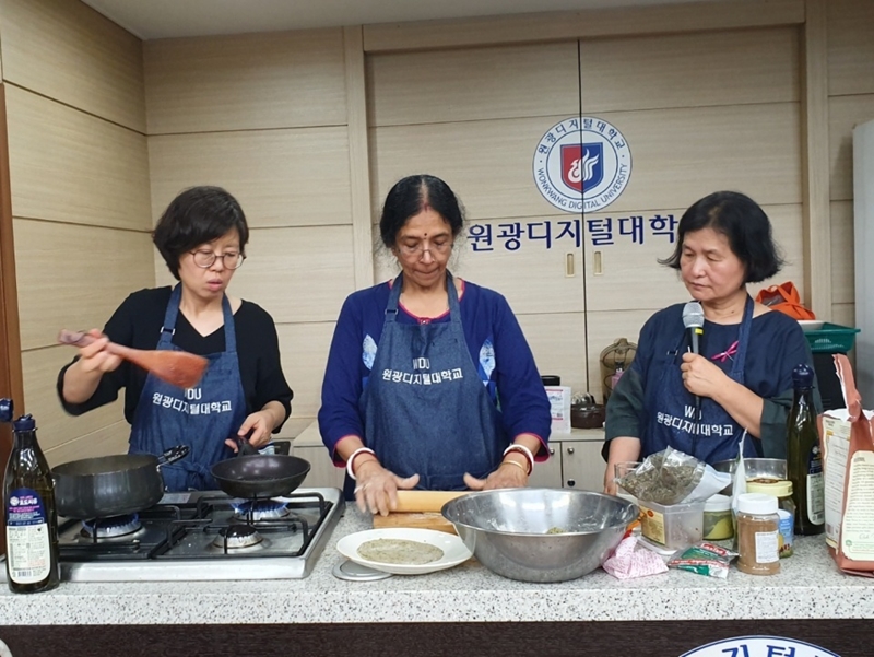 이번 특강은 인도대사관 소속 서울 인도문화원 소마듀타 강사가 인도의 계절음식을 주제로 이론 및 실습을 진행했으며, 웰빙문화대학원 서종순 원장이 통역을 맡아 진행을 도왔고, 원광디지털대학교 최윤희 교수가 실습지도에 힘썼다.