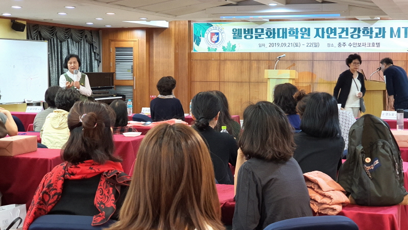 원광디지털대학교 웰빙문화대학원(원장 서종순)은 지난 9월 21일(토)부터 22일(일)까지 충북 수안보파크호텔에서 '2019학년도 2학기 자연건강학과 학생전체모임'을 개최했다.
