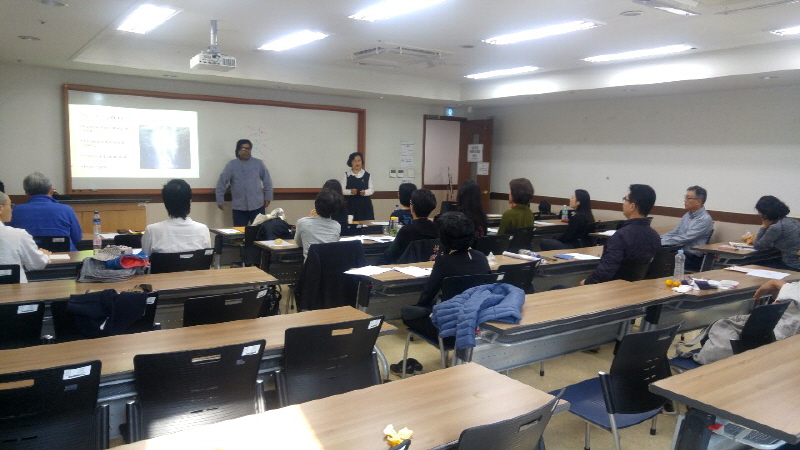 오전 9시에서 12시까지 <하타요가의 실제-텍스트 기반 응용 실습>(강사:김옥선)이 진행되었다. 하타요가의 텍스트 기반 이론과 함께 호흡과 명상실습이 진행되었다.
