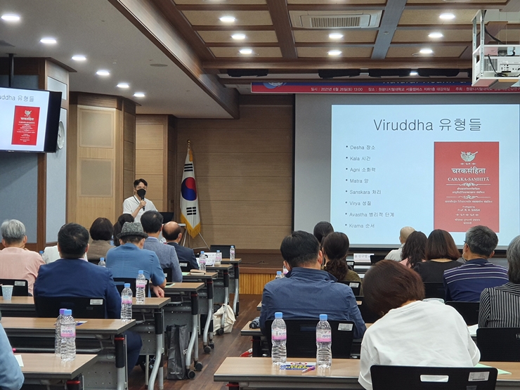 이어 최윤희 원광자연건강연구소장(원광디지털대 한방건강학과 교수)의 사회로 △ 안상우 한국한의학연구원 책임연구원의 '의방유취 식치편의 구성과 이해' △ 바가반뷰안 동서울대학교 교수의 'Yoga therapy and Diet' △ 고경하 슈리베다 웰니스 스튜디오 대표의 '아유르베다와 푸드테라피' △ 정희덕 원광디지털대학교 교수의 '홀푸드테라피와 근골격계 질환 치험례' △ 이근영 니시의학단식법 저자의 '단식의 이해와 실제' 등 총 5개의 초청발표가 진행됐다.